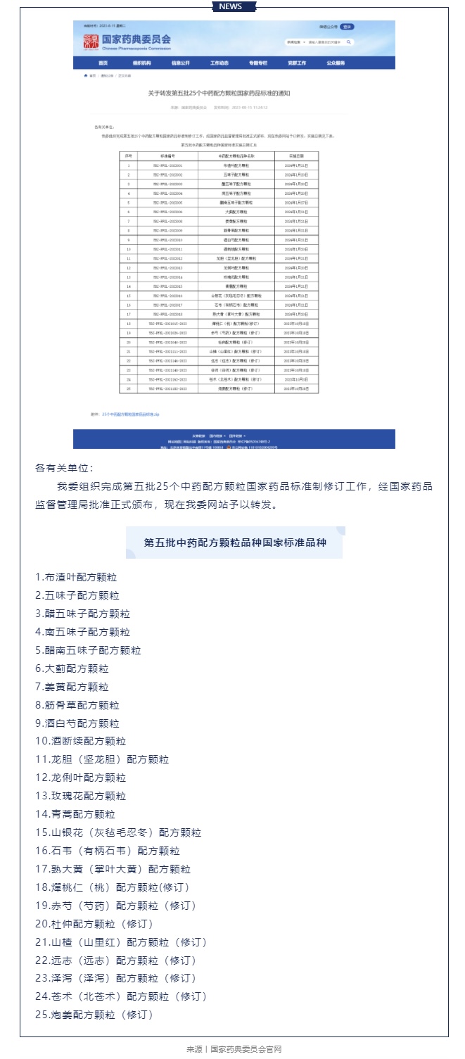 關(guān)于轉(zhuǎn)發(fā)第五批25個(gè)中藥配方顆粒國(guó)家藥品標(biāo)準(zhǔn)的通知