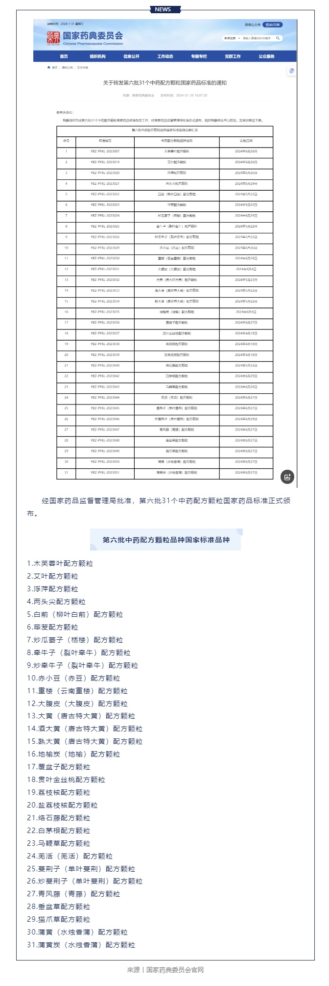 關(guān)于轉(zhuǎn)發(fā)第六批31個中藥配方顆粒國家藥品標(biāo)準(zhǔn)的通知